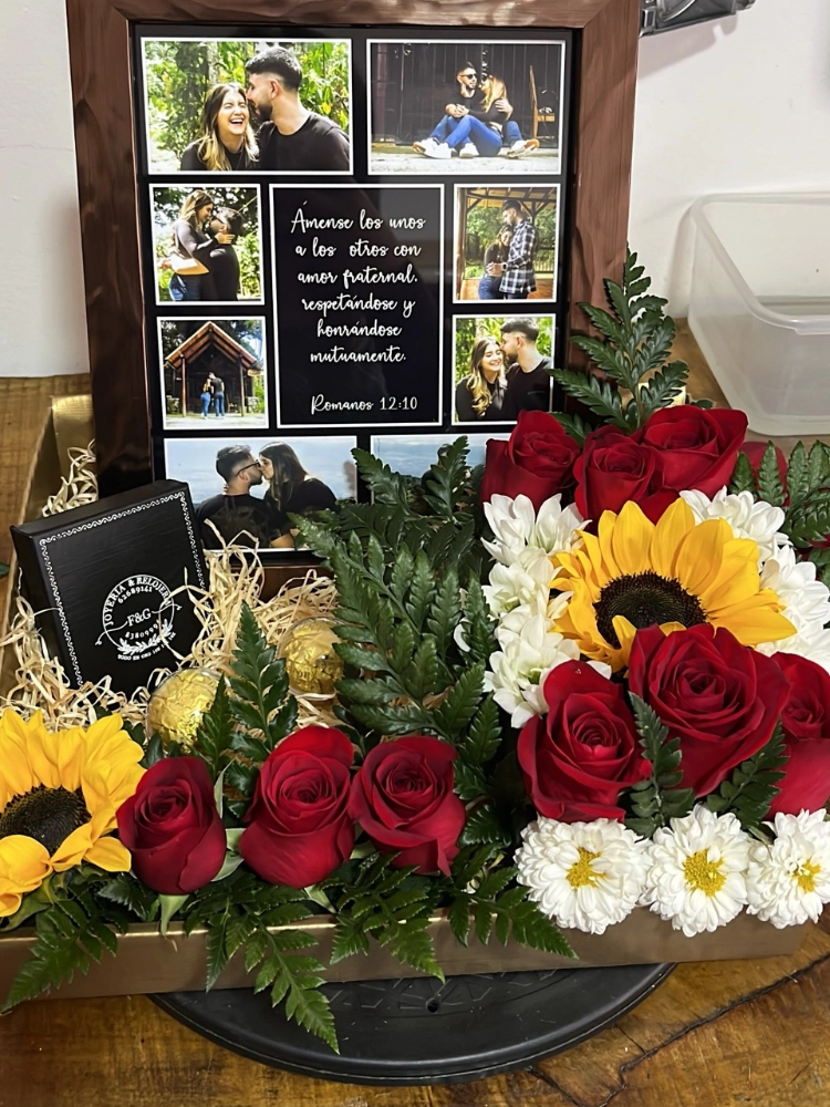 Box personalizada con rosas y girasoles