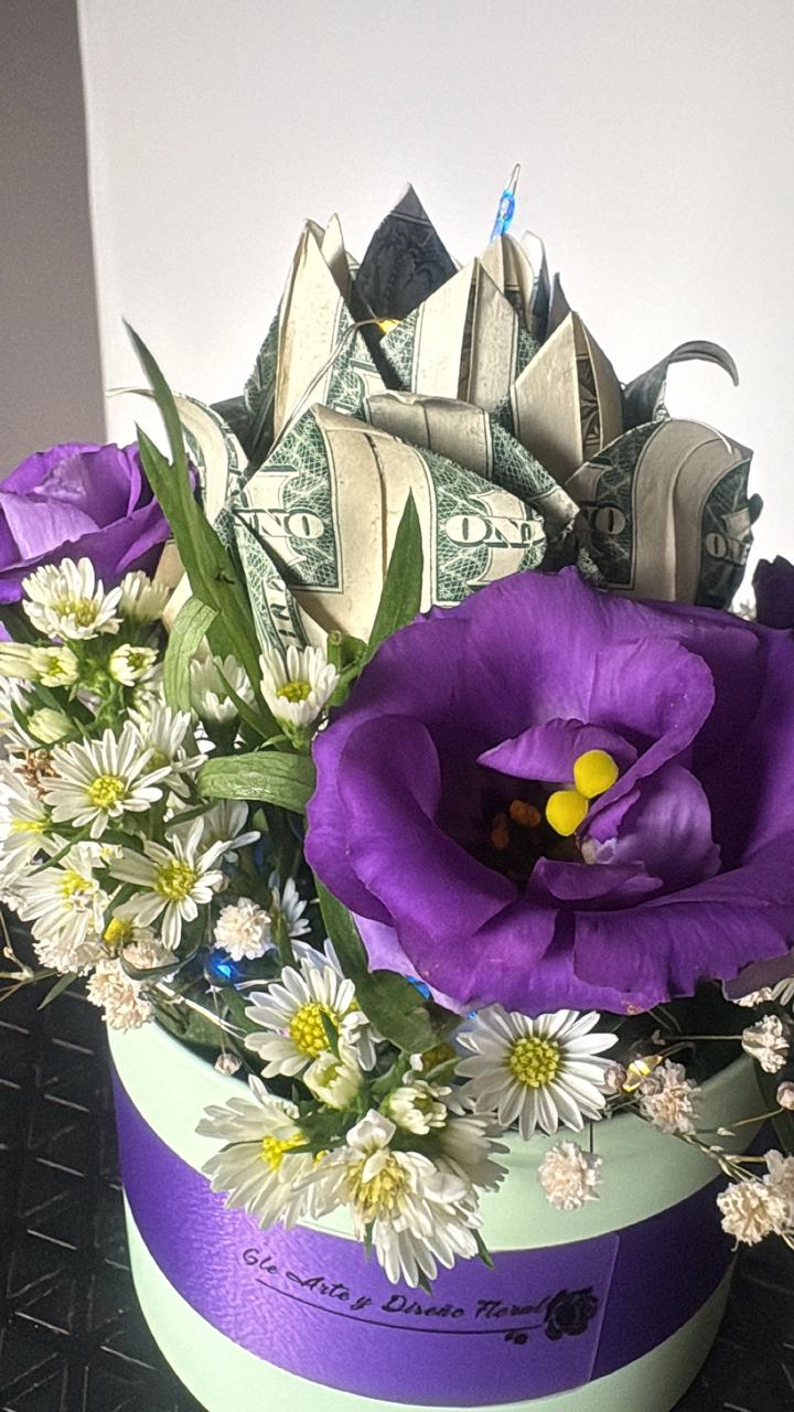 Arreglo floral Lisianthus + Rosa en dólares