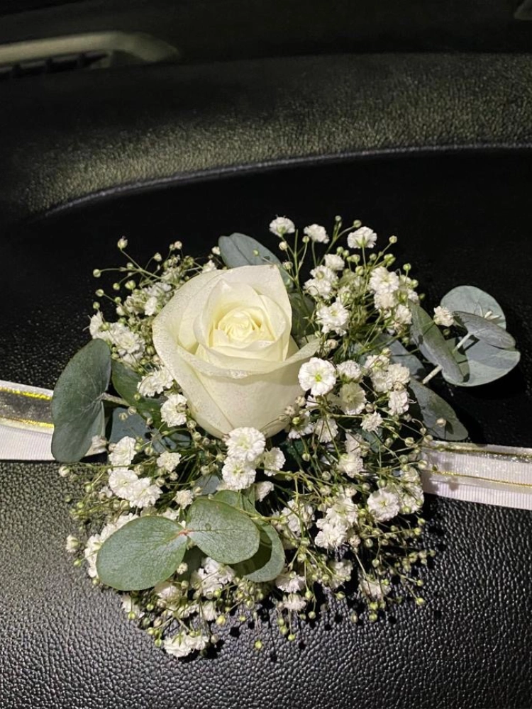 Diseño floral personalizado con flores finas y detalles suaves, ideal para complementar los atuendos de damas de honor y acompañantes especiales.